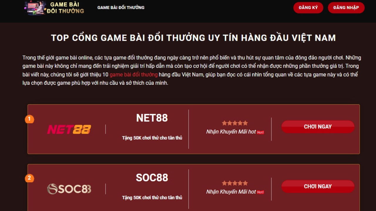 Chúng tôi sẽ giới thiệu 10 game bài đổi thưởng hàng đầu Việt Nam, giúp bạn đọc có cái nhìn tổng quan về các tựa game này và có thể lựa chọn được game phù hợp